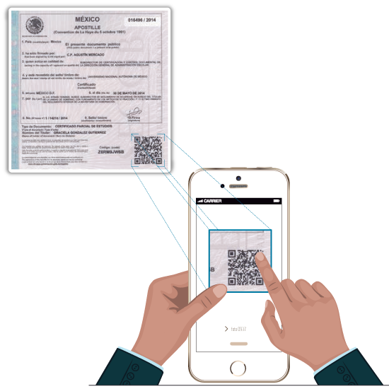 El propósito del código QR es que desde un dispositivo móvil con acceso a internet se pueda consultar las apostillas y legalizaciones y así verificar la autenticidad del documento.